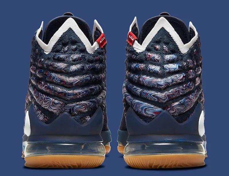 Un bleu sombre. Une semelle en gomme. Mais surtout des touches de blanc, de rouge et de rose. Pour une fois, Nike ne donne pas d'explications sur l'inspiration de la nouvelle teinte de la LeBron 17. Pas grave, le résultat se suffit à lui-même.