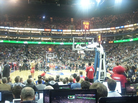 Puis vient le show Deron Williams. Le meneur fait admirer son crossover, sa qualité de passe et son adresse. Bref, tout ce qui lui avait manqué en première mi-temps. Il fait en plus tomber Leandro Barbosa sur un nouveau dribble et sert Brook Lopez pour le alley-oop. La salle explose. Les habitudes liées au foot reviennent et une ola se lance.