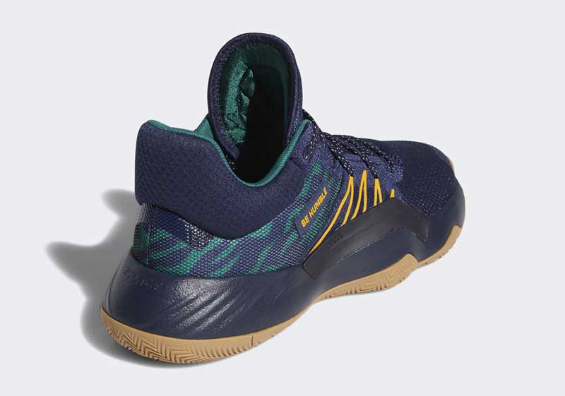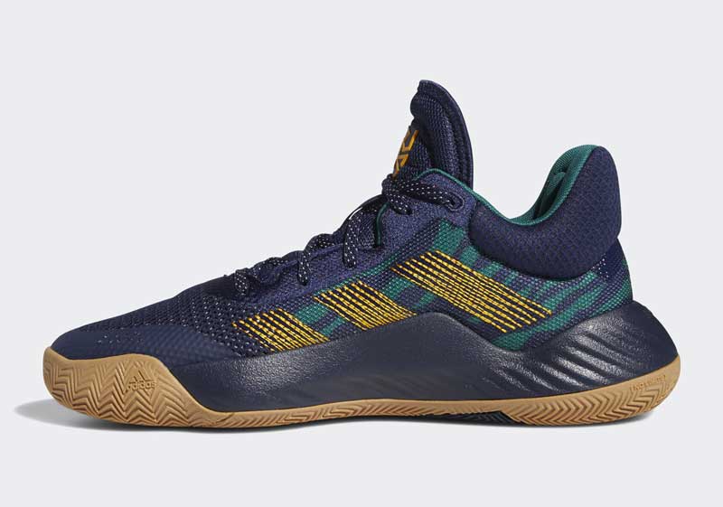 Sur une base marine, adidas a ajouté des touches de vert et de jaune, ce qui respecte donc les couleurs du Jazz. Le petit bonus, c’est que le tout est posé sur une semelle façon gomme.