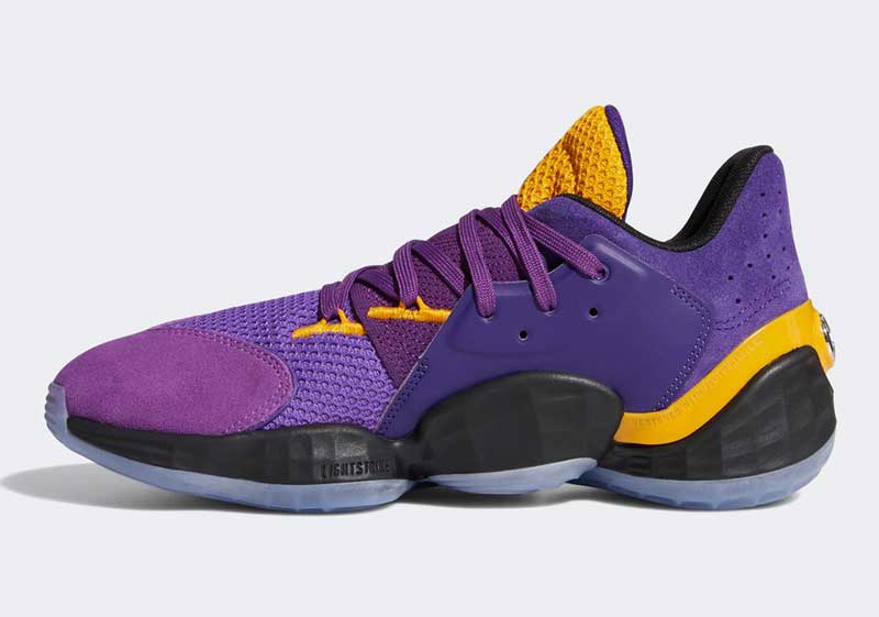 La Harden Vol.4 s’approprie complètement les couleurs des Angelenos, avec une empeigne mauve et jaune qui ne laisse aucun doute. Le coloris est même baptisé “Su Casa Mi Casa LA.”