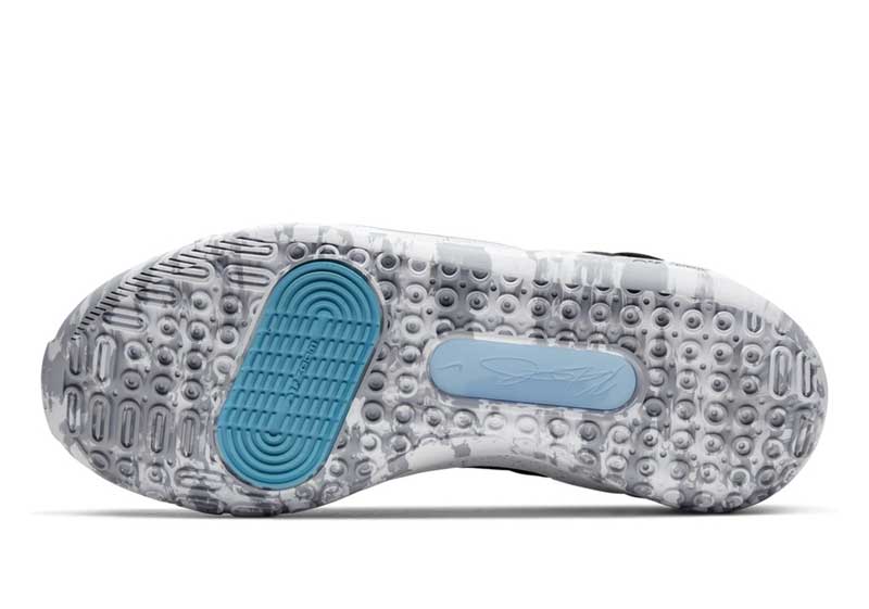 Comme prévu, elle s’inscrit largement dans la continuité de la KD12. On retrouve une nouvelle fois une poche Zoom Air sur toute la longueur et directement cousue directement à l’empeigne. Comme l’an dernier, on a aussi droit à une poche Zoom Air supplémentaire, sauf que cette fois, c’est sous l’avant du pied que Nike double la mise, alors que c’était à l’arrière pour la KD12.