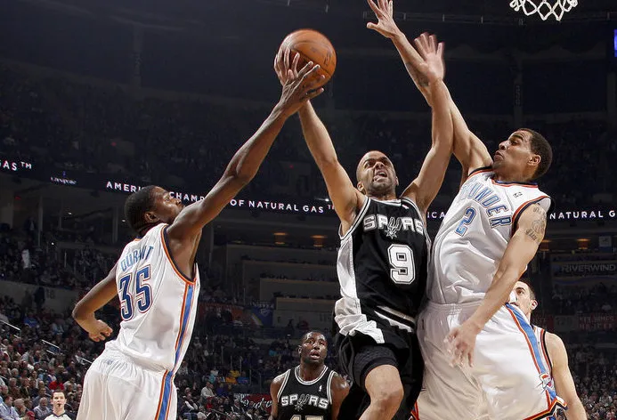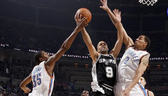 Russell Westbrook et Jeff Green plombés par les fautes, « KD » a pu compter sur le soutien du rookie Serge Ibaka, qui a gagné son surnom de « Serge Iblocka » en faisant deux contres décisifs dans le “money time” sur la légende Tim Duncan, dont un à 12 secondes de la fin pour donner une chance à son équipe de rafler la mise. Kevin Durant pris à deux, c'est Thabo Sefolosha qui a eu la balle de match, mais il l'a manquée.