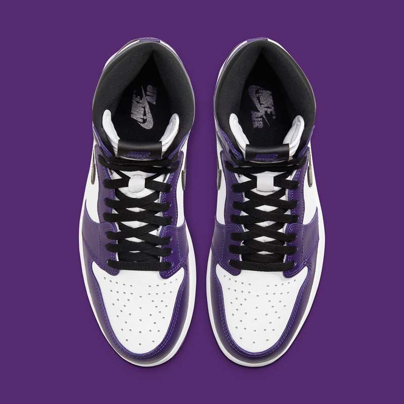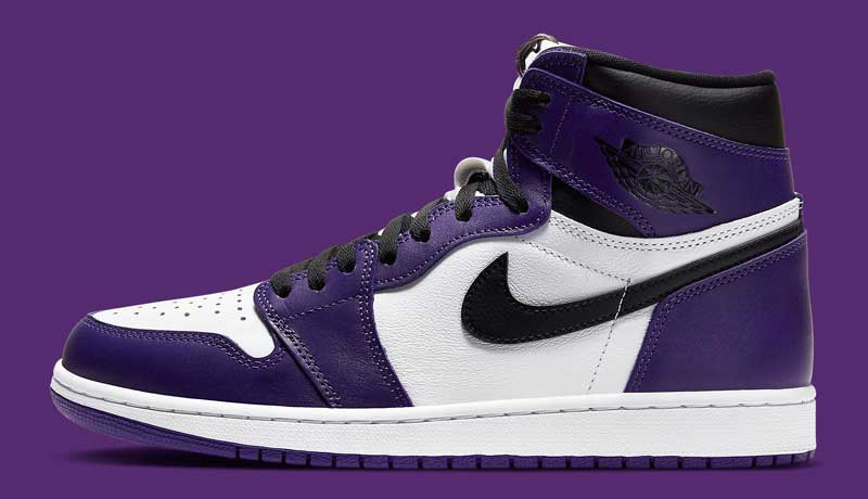 Le 4 avril, ce sera au tour de la Air Jordan 1, pour un coloris inédit. Sur une base blanche, on retrouve des empiècements violets, mais aussi des touches de noir sur la virgule, les lacets et le col.