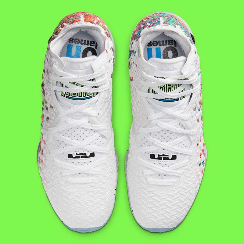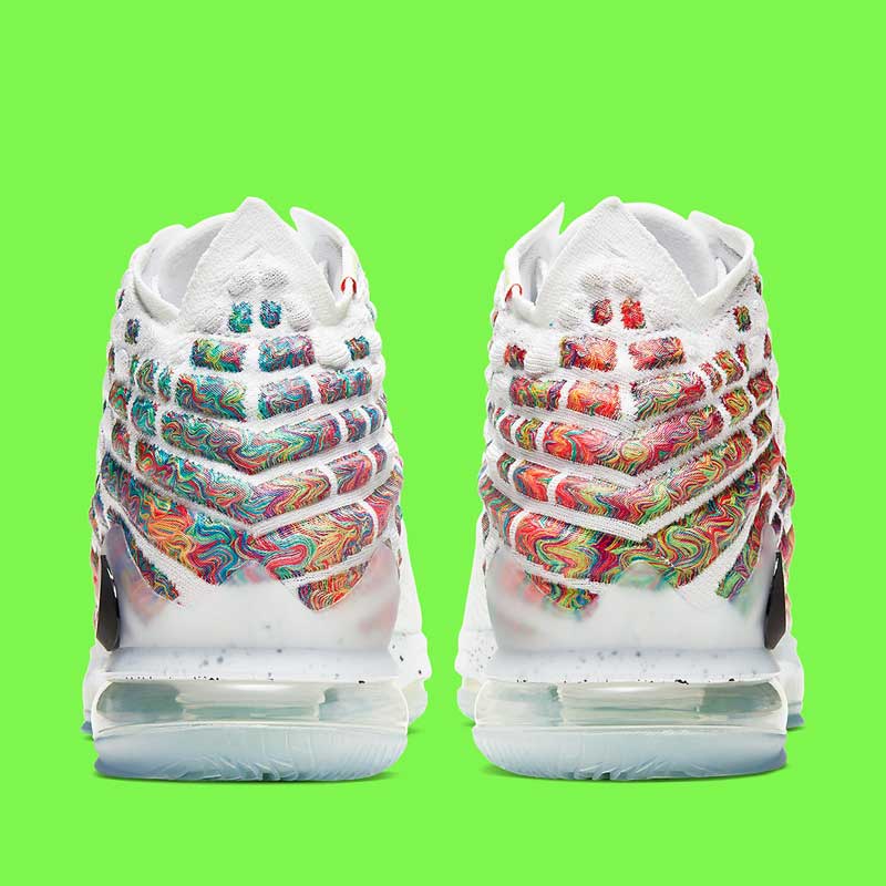 La LeBron 17 reprend cet élément mais le détourne un peu, puisque c’est “LeBron” qui est brodé. L’hommage est tout de même évident.