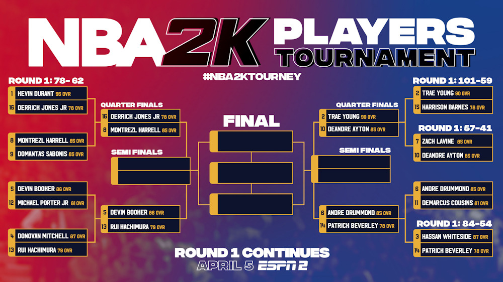 Enfin, le dernier match de l’autre partie du tableau était un combat de poids lourds entre Andre Drummond et DeMarcus Cousins, coéquipiers avec Team USA au championnat du monde 2014. Mieux classé, Drummond avait opté pour les Lakers, tandis que Cousins s’est rabattu sur les Nets, et il n’y a pas eu match puisque Drummond, grand fan de jeux vidéo comme Booker, a signé la plus large victoire de ce premier tour : 101-49 ! Au prochain tour, le pivot de Cleveland défiera Pat Beverley.