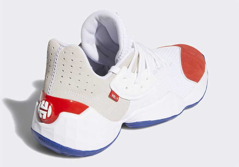 Base blanche, empiècements rouges et semelle bleue. C’est bien la Question d’Allen Iverson qui se pose sur la signature de James Harden. Un emprunt inhabituel mais qui fonctionne plutôt bien.