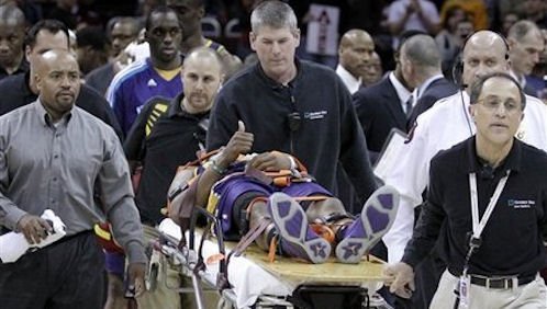 Pas bien en forme ces derniers temps, le frelon leader de la ruche a pris un sérieux coup sur la tête. Littéralement. Pris en sandwich entre deux joueurs des Cavs, Chris Paul se prend violemment le crane sur l’avant-bras de Ramon Sessions.
