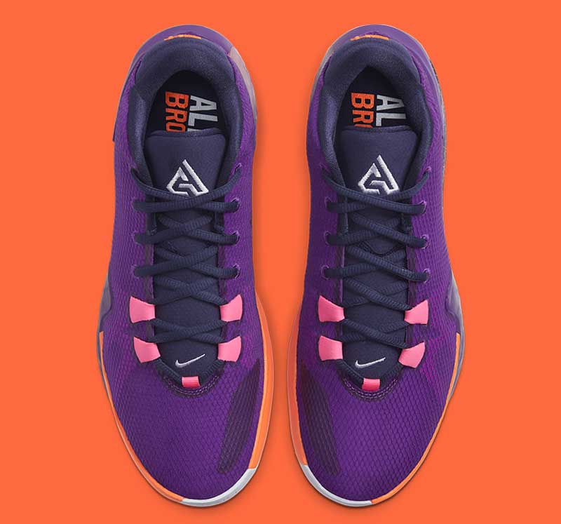 Au fil des playoffs du mode Nation MonJOUEUR, des nouvelles paires vont être dévoilées. La première est une Zoom Freak 1 violette, très festive, avec des accents orange et rose. Elle est baptisée « All Bros 4. »