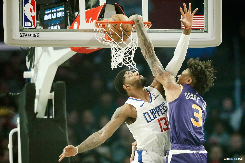 Niveau poster, Sekou Doumbouya sur Tristan Thompson répond à Ja Morant sur Aron Baynes quand Kelly Oubre Jr. monte sur Paul George, avant que ce dernier ne lui rende la monnaie de sa pièce.