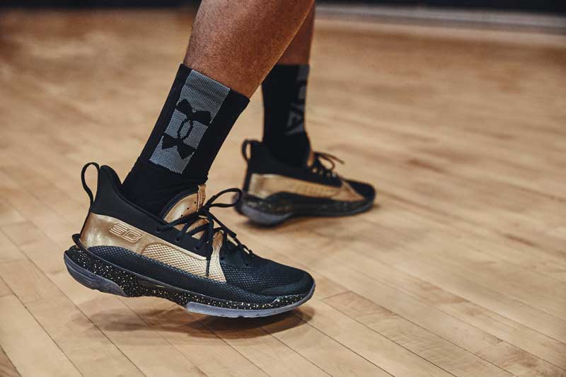 Toujours équipée d’une tige en tricot et d’un amorti HOVR, cette Curry 7 sera proposée pour 140 euros.