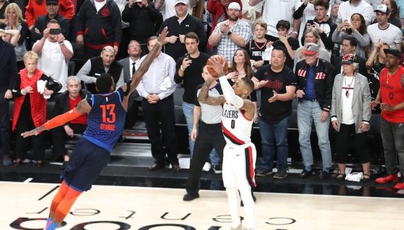 Cerise sur le gâteau : ces ultimes secondes où “Dame” dribble, fixe Paul George puis se décale, pour envoyer un shoot à 3-pts à 11 mètres ! La balle transperce le filet et le All-Star salue avec sa main le Thunder, qu’il envoie en vacances et va (indirectement) détruire, car “PG13” et Russell Westbrook quitteront Oklahoma City durant l’été.
