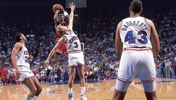 Ce sera pourtant Michael Jordan qui rira le dernier, avec ce tir iconique pour la gagne, et le fameux coup de pied en l’air qui donne l’illusion de faire tomber Craig Ehlo en arrière plan.