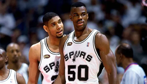 À ses côtés, David Robinson, ancien MVP et l'un des meilleurs joueurs de sa génération, et à l'occasion de l'anniversaire de “Dream Tim”, l'Amiral s'est souvenu de son arrivée à San Antonio.