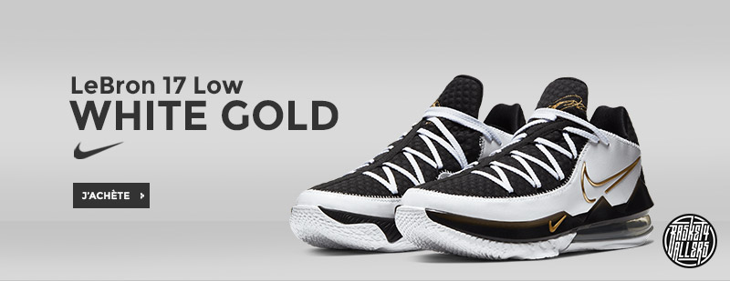 Procurez-vous maintenant sur Basket4Ballers.com la Lebron 17 Low Gold qui associe une coupe basse noire, blanche et piquée de détails dorés à une puissante combinaison d’amorti, d’absorption des chocs et de réactivité.