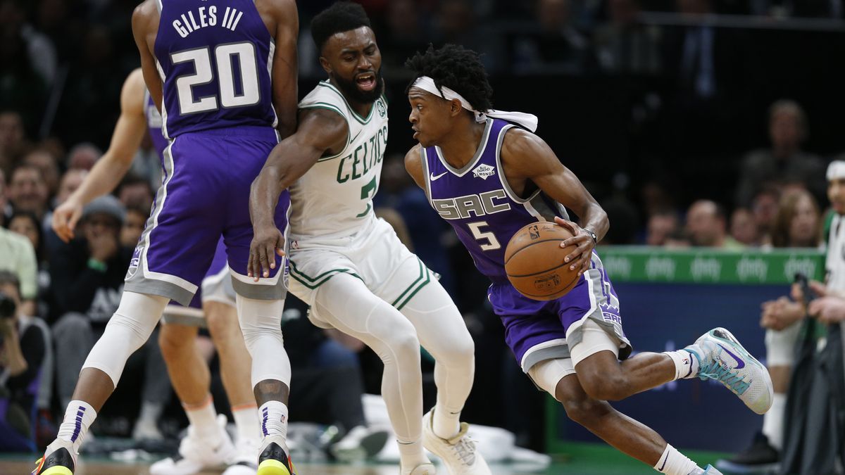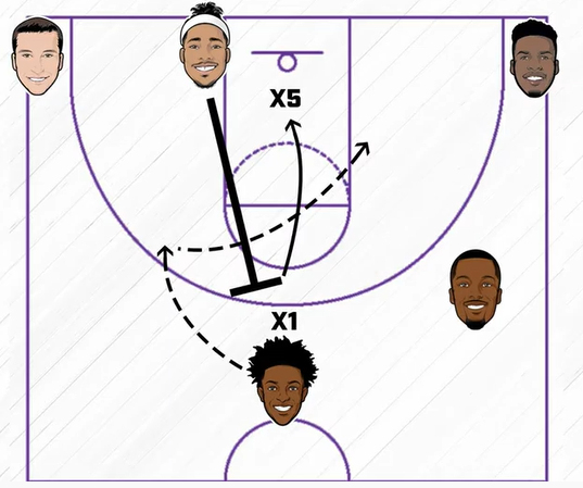 L’objectif est clair : empêcher son défenseur de gêner De’Aaron Fox qui s’est ouvert le chemin du panier.