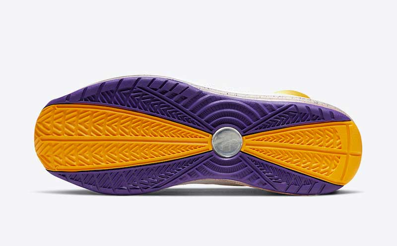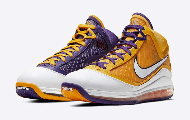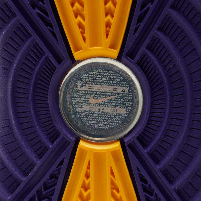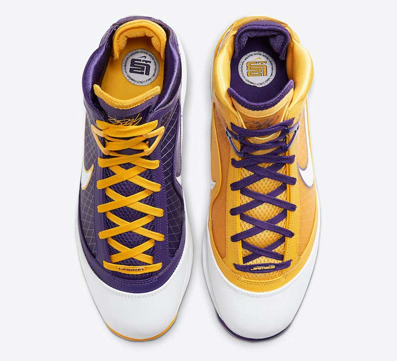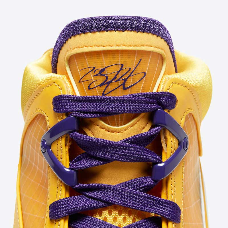 Un coloris dépareillé. Principalement jaune pour le pied gauche. Violet à droite. Les Lakers, tout simplement.