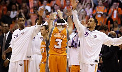 Après leur très belle prestation à domicile lors du Game 1, les Suns revêtaient mercredi soir leur costume spécial « cinco de mayo ». Un habit aux couleurs politiques pour dénoncer une loi d’immigration assez discriminatoire. Soutenant ainsi leur public d’origine hispanique, et soutenu en retour, Phoenix rentrait dans le match avec un avantage psychologique majeur.