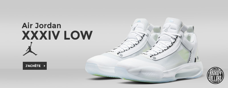 Procurez-vous maintenant sur Basket4Ballers.com la Air Jordan XXXIV Low white au style épuré afin de la rendre aussi légère que possible pour un confort et des performances optimales en match.