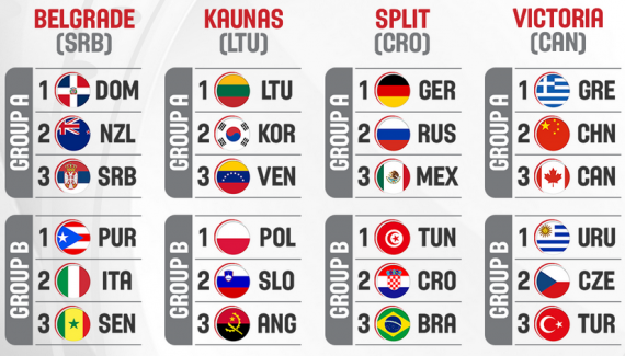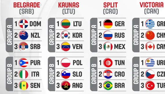 Même chose pour la Lituanie, dans la poule A de la Corée du Sud et du Venezuela à Kaunas, même s’il faudra ensuite croiser avec la Slovénie de Luka Doncic, la Pologne et l’Angola. À Split, la Croatie se retrouve de son côté avec la Tunisie et le Brésil, l’autre groupe étant formé de l’Allemagne, de la Russie et du Mexique.
