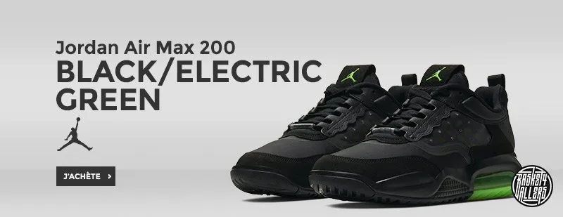 Procurez-vous maintenant sur Basket4Ballers.com les Jordan Air Max 200 pour un confort quotidien dans un coloris subtil de noir et vert électrique qui s'adaptera à tous les styles.