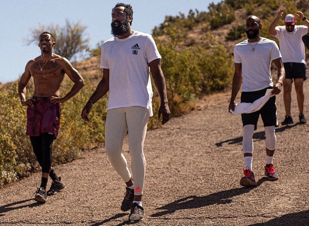 Christian Polk, ancien coéquipier de fac de James Harden et coach personnel de la star pendant la confinement, se tue à le dire : la légende disant que l’arrière des Rockets n’a pas une bonne éthique de travail est… une légende. Le MVP 2018 a visiblement bossé comme un dingue pendant l’arrêt de la saison, et le résultat visible sur les images postées sur les réseaux sociaux parle de lui-même : James Harden n’a plus que la barbe sur les os !