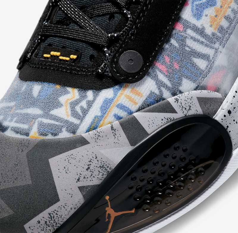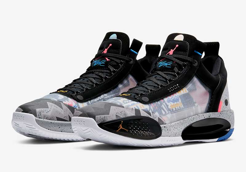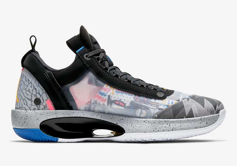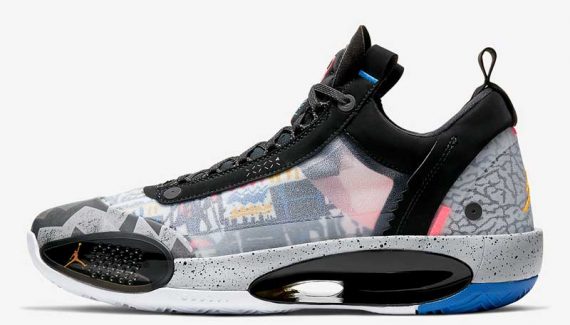 Le 4 juin, c’est la Air Jordan 34 Low qui devrait replonger dans les souvenirs. Sur cette chaussure, on va retrouver un motif qui semble inspiré par le T-shirt assez improbable que portait His Airness pendant une balade à Barcelone en marge des Jeux Olympiques de 1992. Une tenue également apparue dans une publicité pour une chaîne de fast food au cours de laquelle Michael Jordan défie Larry Bird.