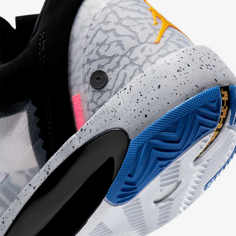 Jordan Brand a tout de même eu la bonne idée d’adoucir un peu le rendu, pour obtenir une chaussure originale mais sans être trop tape à l’œil.