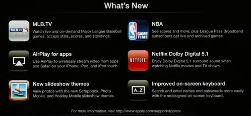 Les fans de baseball sont aussi concernés puisque l'équivalent du League Pass pour MLB est aussi accessible depuis l'Apple TV.