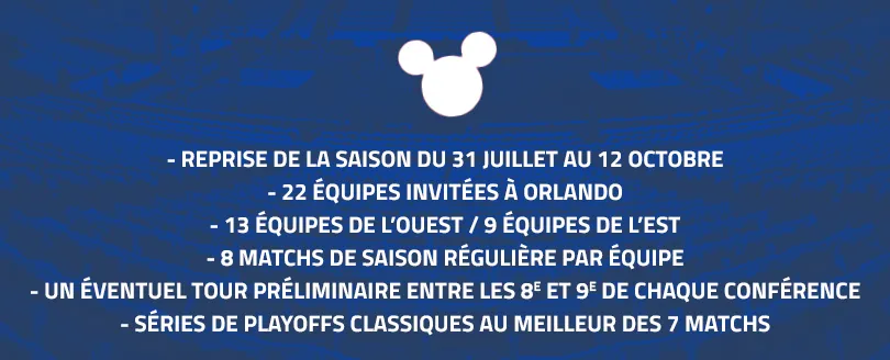 Les camps d'entraînement débuteront le 30 juin, les équipes devant se rendre à Orlando à partir du 7 juillet.