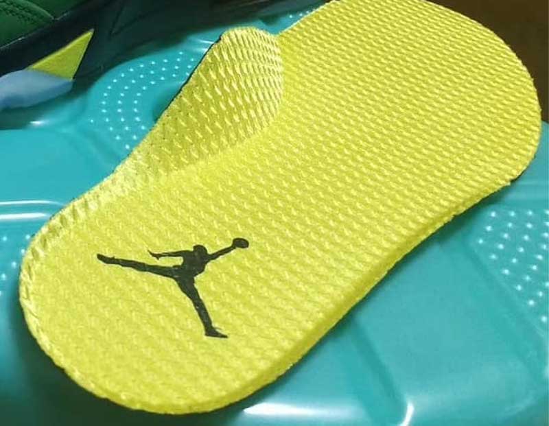 Une différence notable tout de même avec les paires envoyées aux étudiants : pas de trace du « Oregon Duck », la mascotte de l’université. Le personnage étant inspiré de Donald Duck, au point de faire l’objet d’un contrat de licence avec Disney, cela a peut-être joué un rôle dans l’impossibilité de l’afficher sur une paire de Jordan.