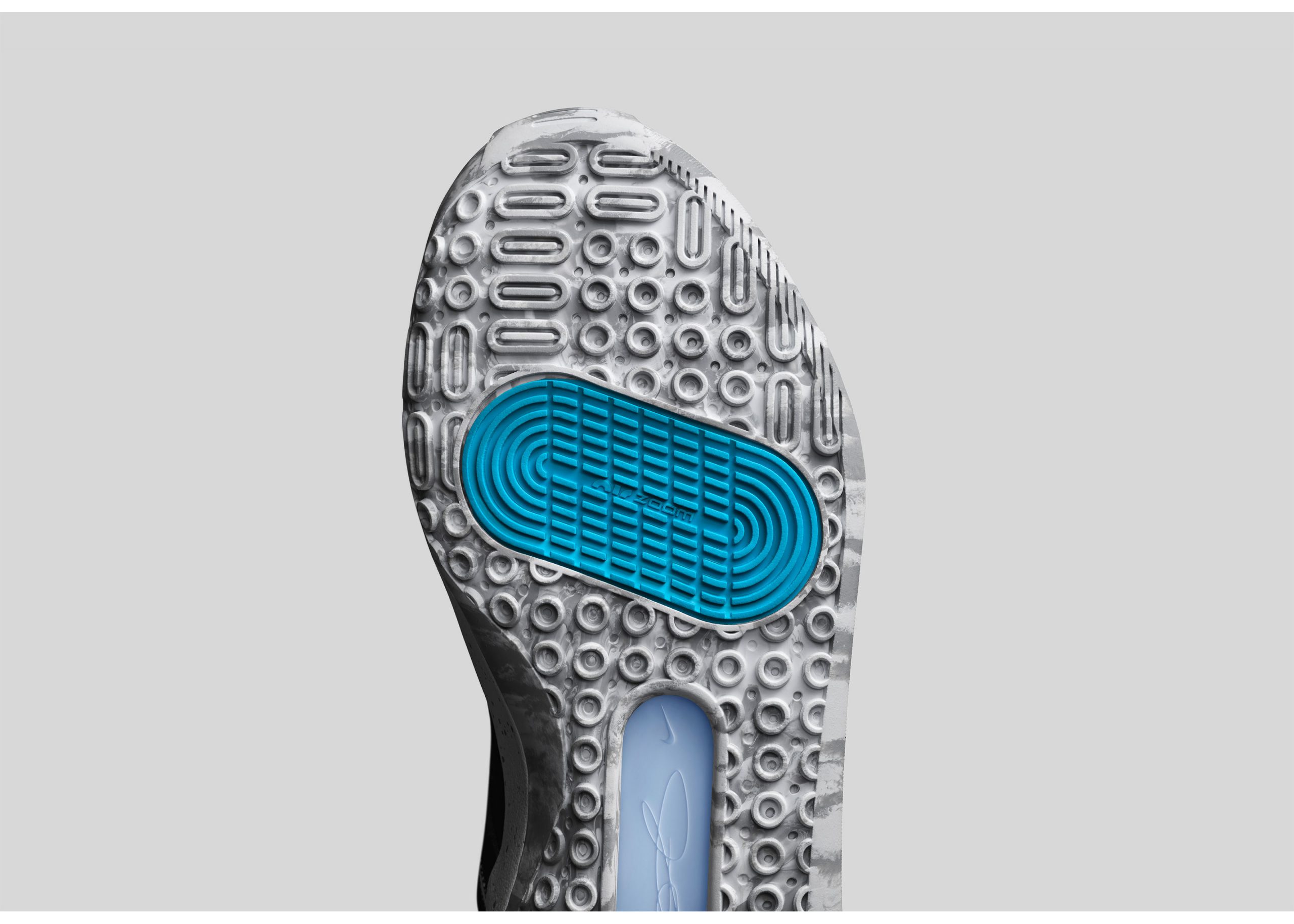 L’amorti est un des points forts du modèle, avec cette poche Zoom Air qui parcourt toute la chaussure, comme sur la KD 12. Cette dernière possédait un cousin Hex Zoom à l’arrière, remplacé ici par un « double stacked Zoom » sur l’avant. Choix payant tant il donne à la fois une impression de ressort sur les décollages et d’amorti sur les atterrissages.