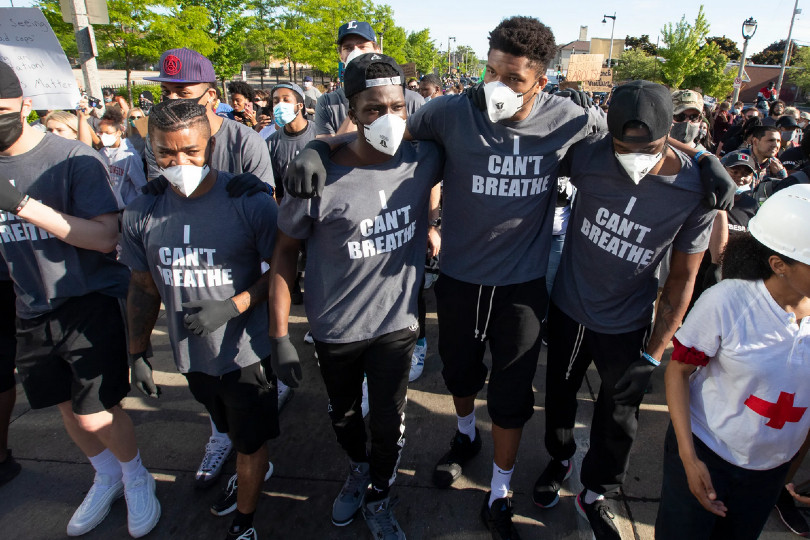 Samedi, Giannis Antetokounmpo et son frère Thanasis ont ainsi participé à une marche du côté de Milwaukee. Ils étaient accompagnés de leurs coéquipiers, Sterling Brown, Donte DiVincenzo, Brook Lopez et Frank Mason III, et ils portaient tous des t-shirts “I Can’t Breathe” (“Je ne peux pas respirer”).