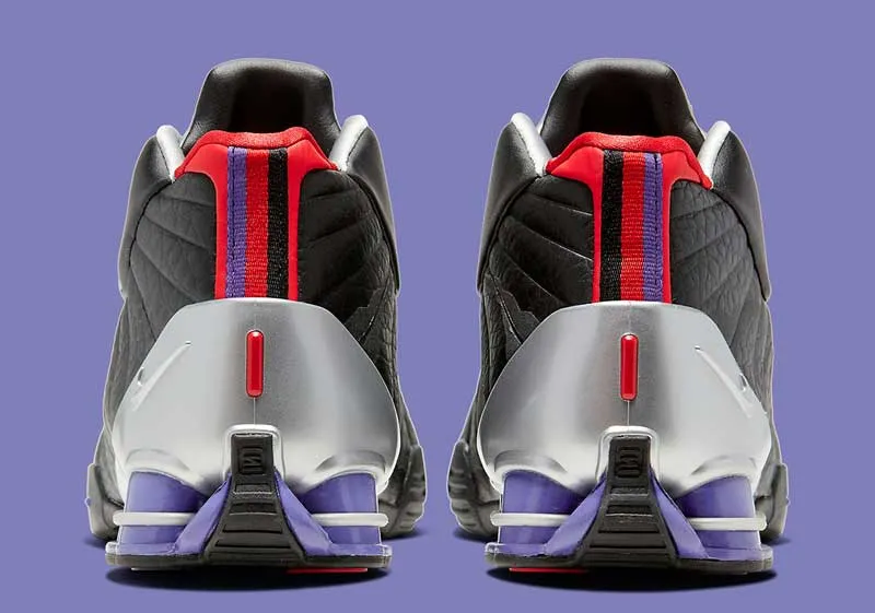 Même s'il a terminé sa carrière à Atlanta, ce sont bien les Raptors qui sont à l'honneur, avec un combo noir/mauve/rouge qui rappelle sans le moindre doute la franchise pour laquelle “Air Canada” a réalisé ses plus belles envolées. Un léger motif ton-sur-ton dans la partie noire rappelle les griffes du Raptor sur le logo de l'équipe.