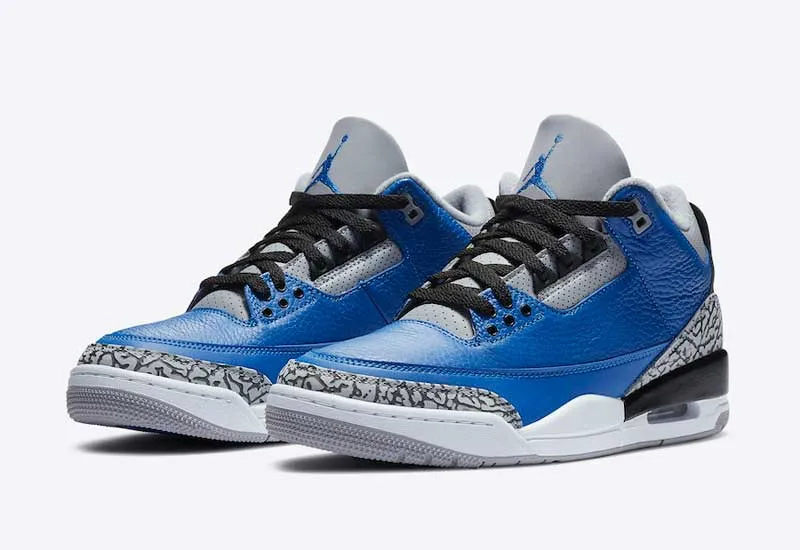 La teinte « Varsity Royal », annoncée pour le 25 juin, reprend ainsi les grandes idées des teintes de DJ Khaled. Le bleu est majoritaire, accompagné par du gris, du blanc, du noir et l’imprimé éléphant si distinctif de la Jordan 3.