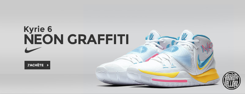 Shoppez les Nike Kyrie 6 “Neon Graffiti” et adoptez le style de jeu explosif et inarrêtable de Kyrie Irving grâce la technologie Air Zoom Turbo sur l’avant du pied.