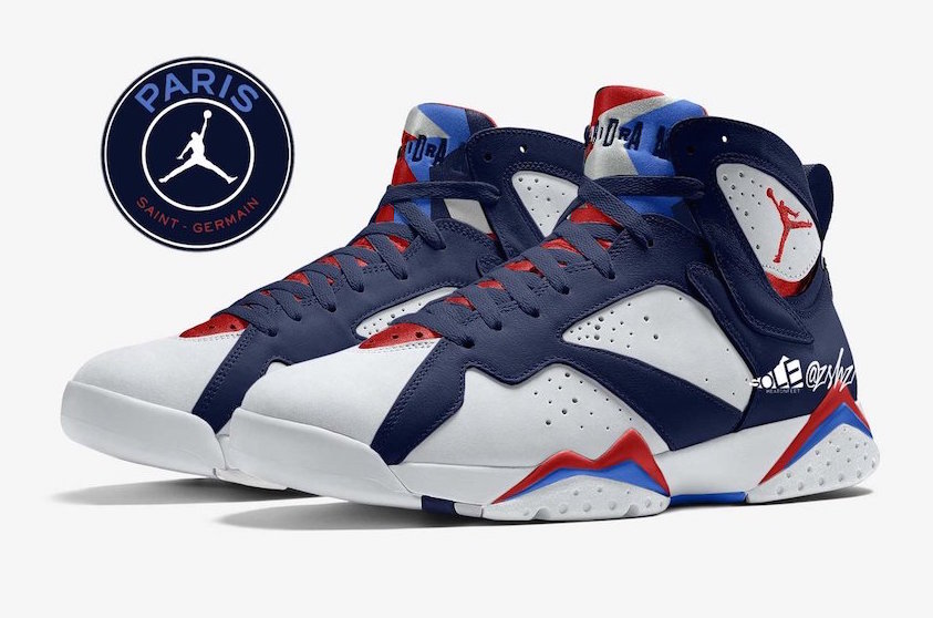 Après des versions des Air Jordan 1, 5 et 6, Jordan Brand sortira au printemps 2021 une Air Jordan 7 estampillée PSG. Selon KicksOnFire, qui produit un visuel de la chaussure, on trouvera les lettres “PSG” sur la semelle intérieure et sur le talon.