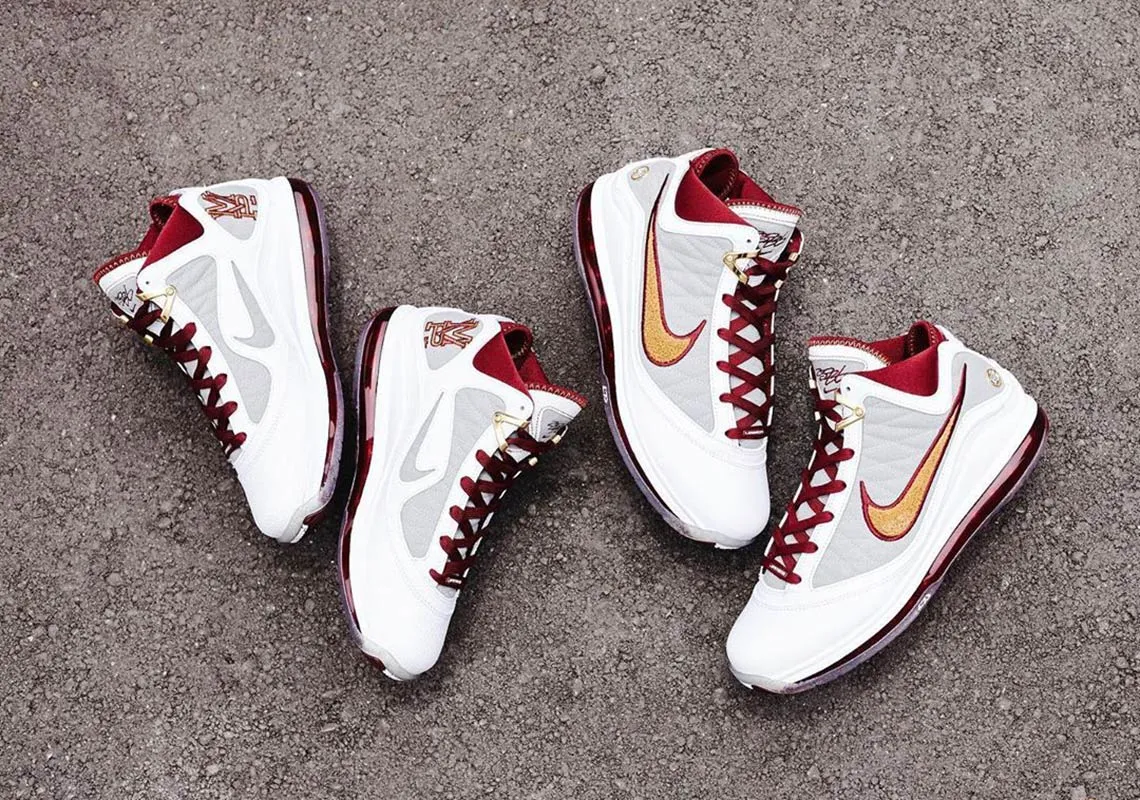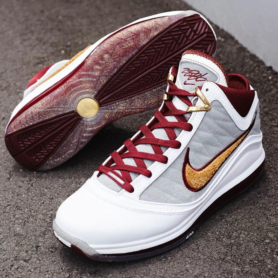 La LeBron 7 fait partie des chaussures les plus appréciées, et ça ne va pas changer avec la sortie de cette déclinaison baptisée « MVP » ce vendredi 26 juin, dix ans après le deuxième sacre de MVP du King. À l'époque il était un Cavalier, d'où ces couleurs (même s'il était sur le point de quitter Cleveland pour rejoindre Miami.)