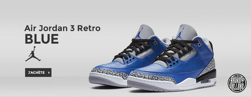 Shoppez la Air Jordan 3 “Royal” version modifiée du coloris “Black Cement” d’origine arborant l’une des couleurs les plus emblématiques de la marque, le bleu royal, pour un look rétro inspiré de la chaussure légendaire.