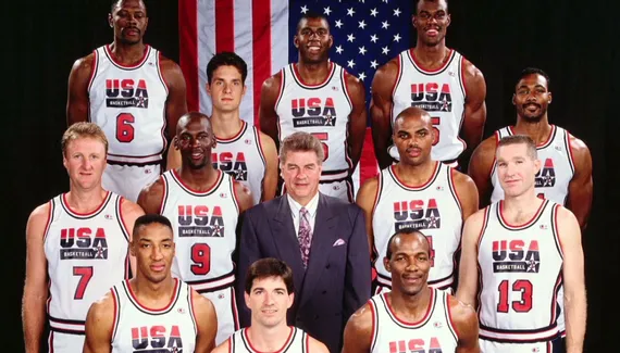 Christian Laettner, qui venait de sortir de Duke, était le seul joueur universitaire de cette formation de légende.