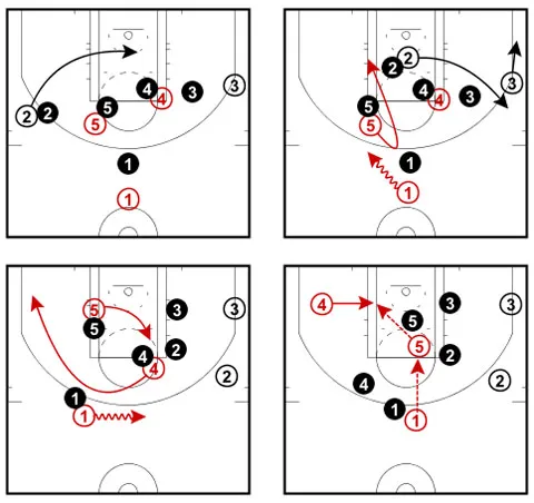 L'objectif, pour les Sixers, est d'éloigner Kevin Garnett d'Elton Brand. Pour cela, Jrue Holiday met en place le système. Spencer Hawes fait mine de poser un écran puis va se placer poste bas. A ce moment-là, aucune différence n'a été faite.