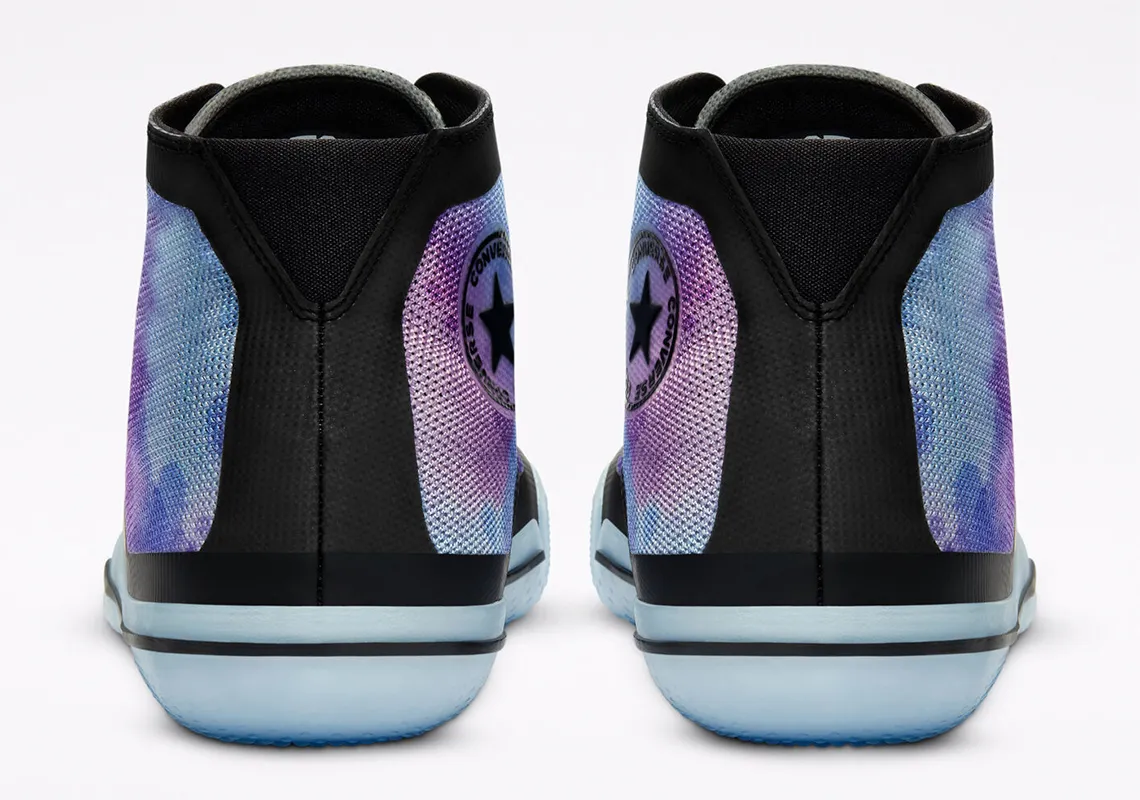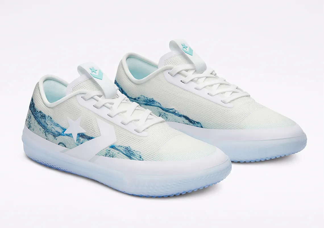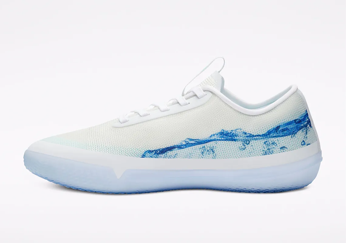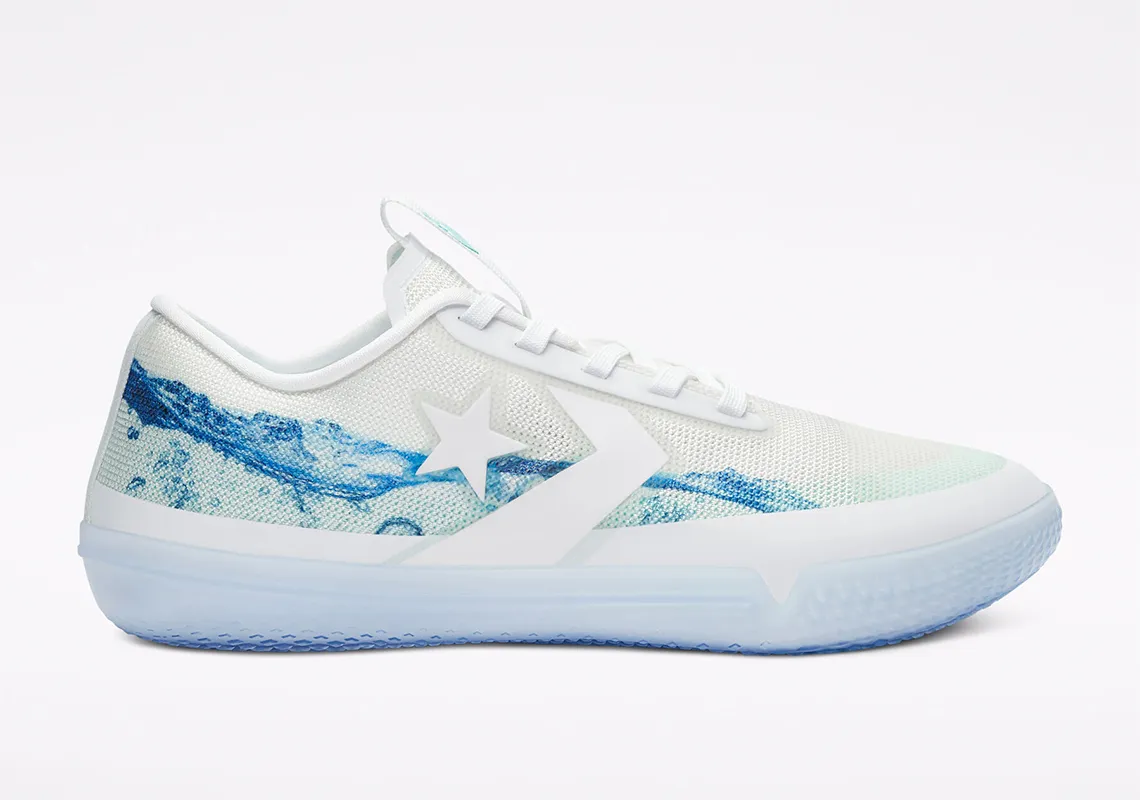 Une gamme qui comprend les All Star Pro BB en version haute et basse, avec pour la première un coloris représentant bien l'ailier des Suns : un tie and dye violet psychédélique. Pour la deuxième, histoire de contrebalancer avec la paire en feu de l'automne dernier, celle-ci est couverte en partie d'eau.