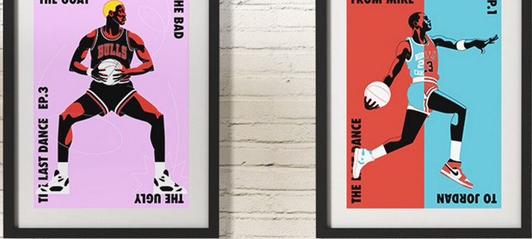 Trajectoire Studio, à qui on devait déjà l’exposition “When Basketball Inspires” en 2019, s’est donc pleinement inspiré de ces dix épisodes pour travailler avec des artistes afin de proposer des visuels autour du documentaire. Ces dessins ont ensuite pris la forme d’affiches ou de maillots en série limitée.