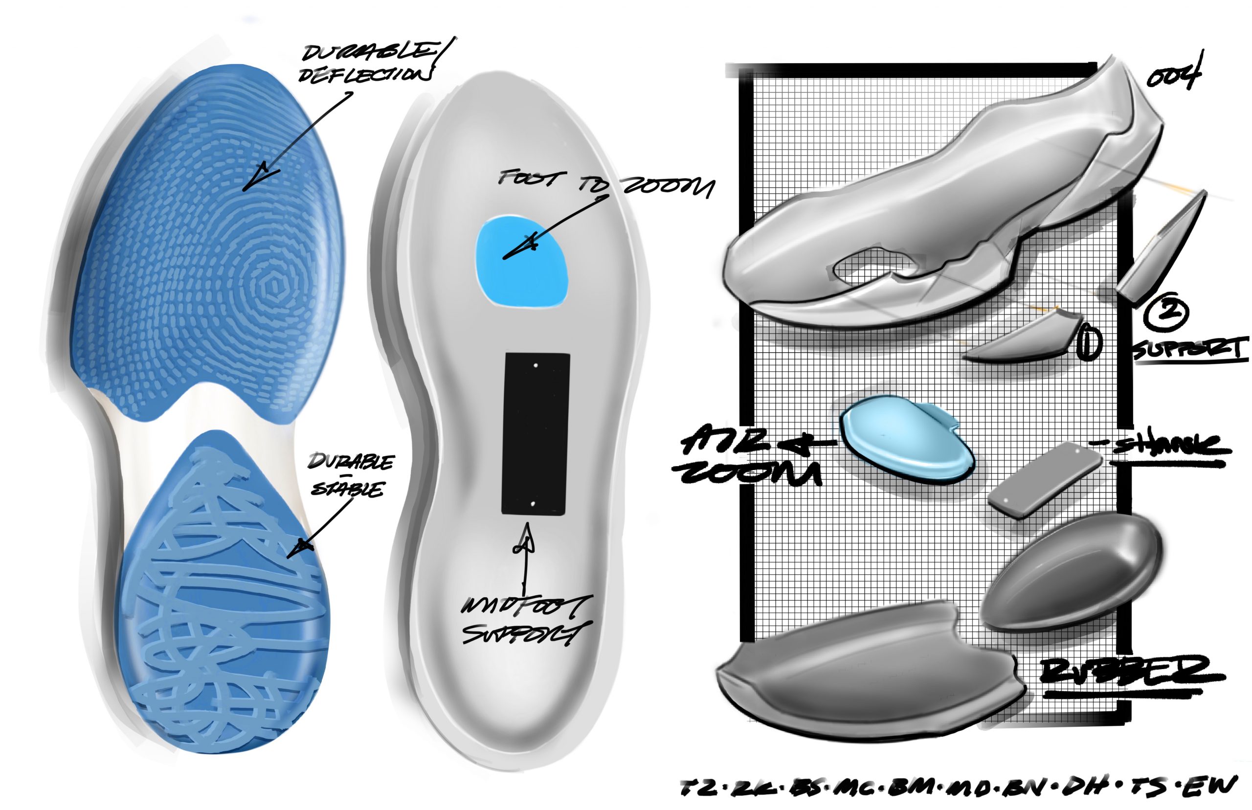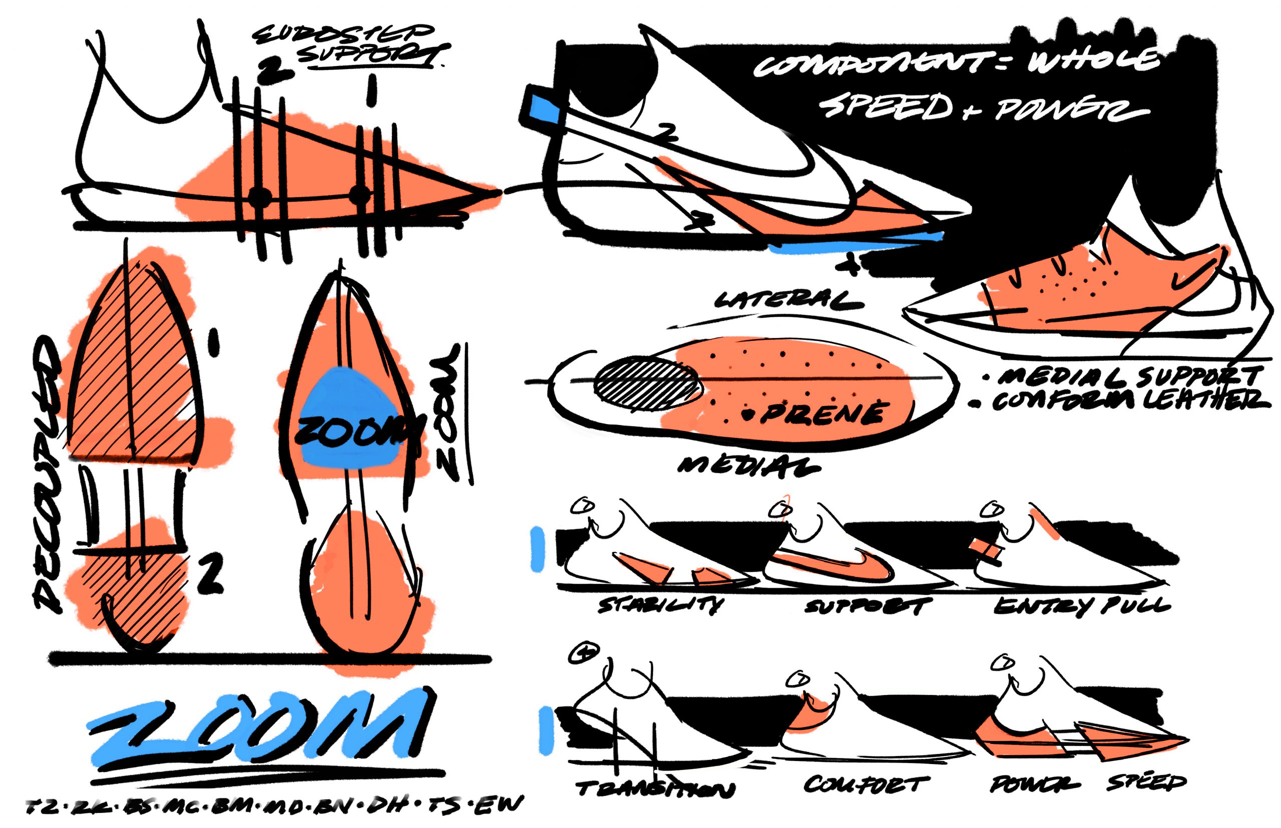 Le Greek Freak considère sa chaussure comme « la plus confortable qu’il n’ait jamais mise », grâce à cette poche qui est combinée à l’agréable mousse déjà présente sur la ZF1 ainsi que deux semelles en caoutchouc sous le pied qui promettent de tenir. Les multiples renforts en TPU ainsi que l’armature autour du talon assurent quant à eux le maintien. Tout est dans la série de croquis communiquée par Nike présente ci-dessous.