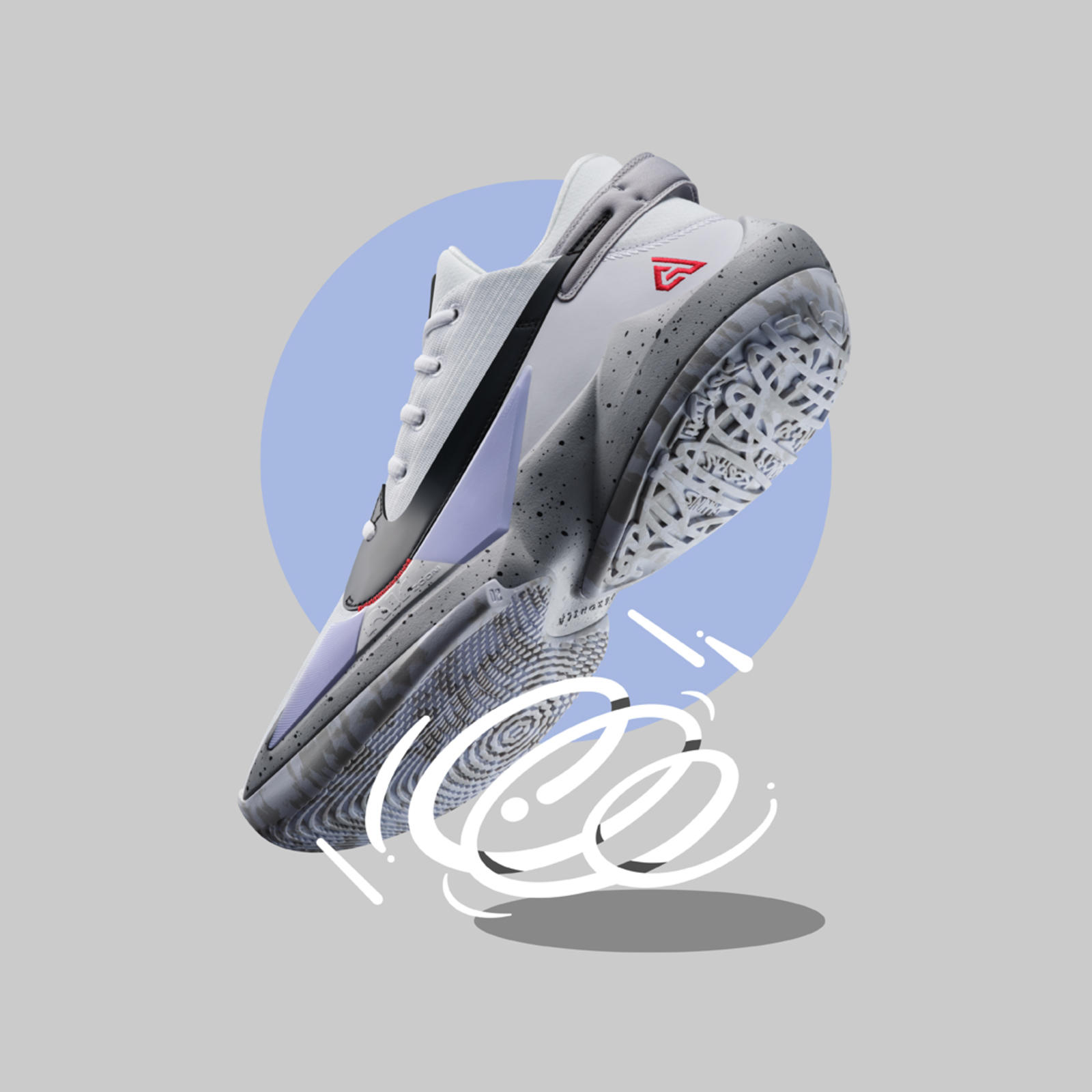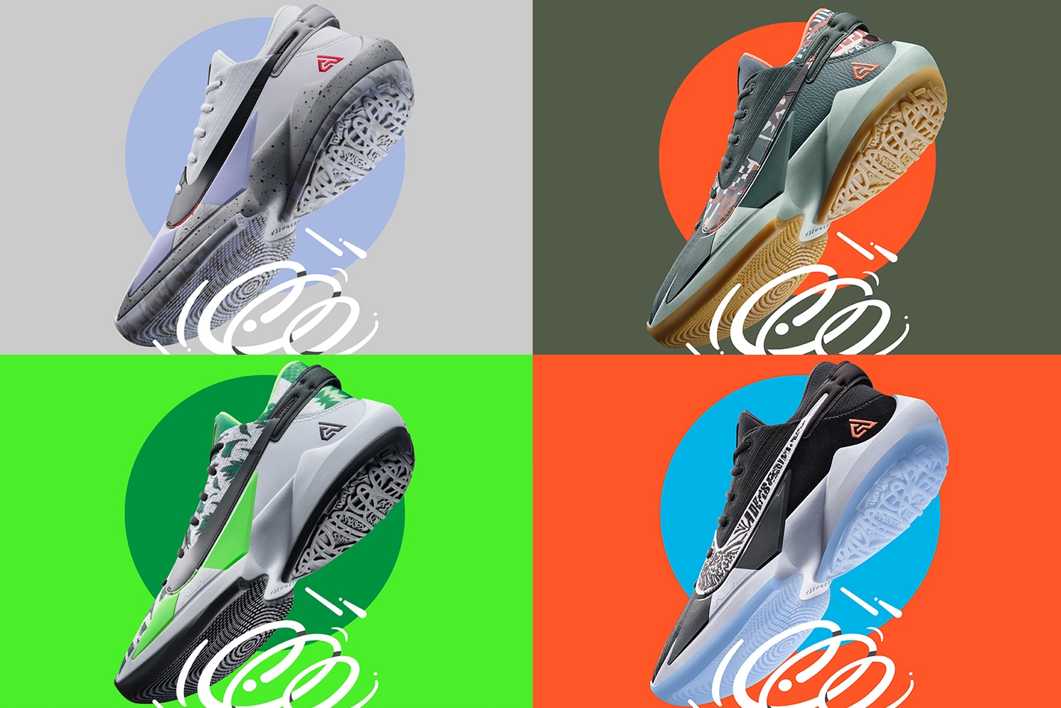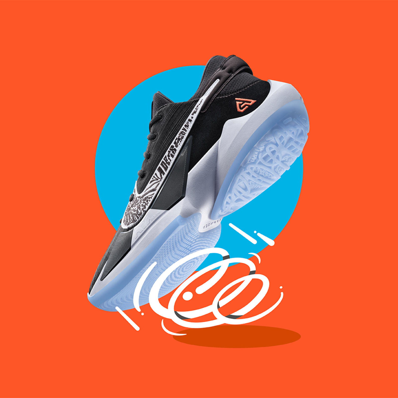 Pas peu fier de ce deuxième modèle signature, le Grec a insisté sur deux choses quant à l’élaboration de la chaussure. D’abord, « il fallait qu’elle raconte une histoire » : comme sur la ZF1, les prénoms de ses parents et de ses frères sont présents sur le modèle, ainsi que les différents logos qui lui sont associés, sans compter les coloris sur lesquels ils jouent pour rappeler son parcours entre le Nigéria, la Grèce et les États-Unis.