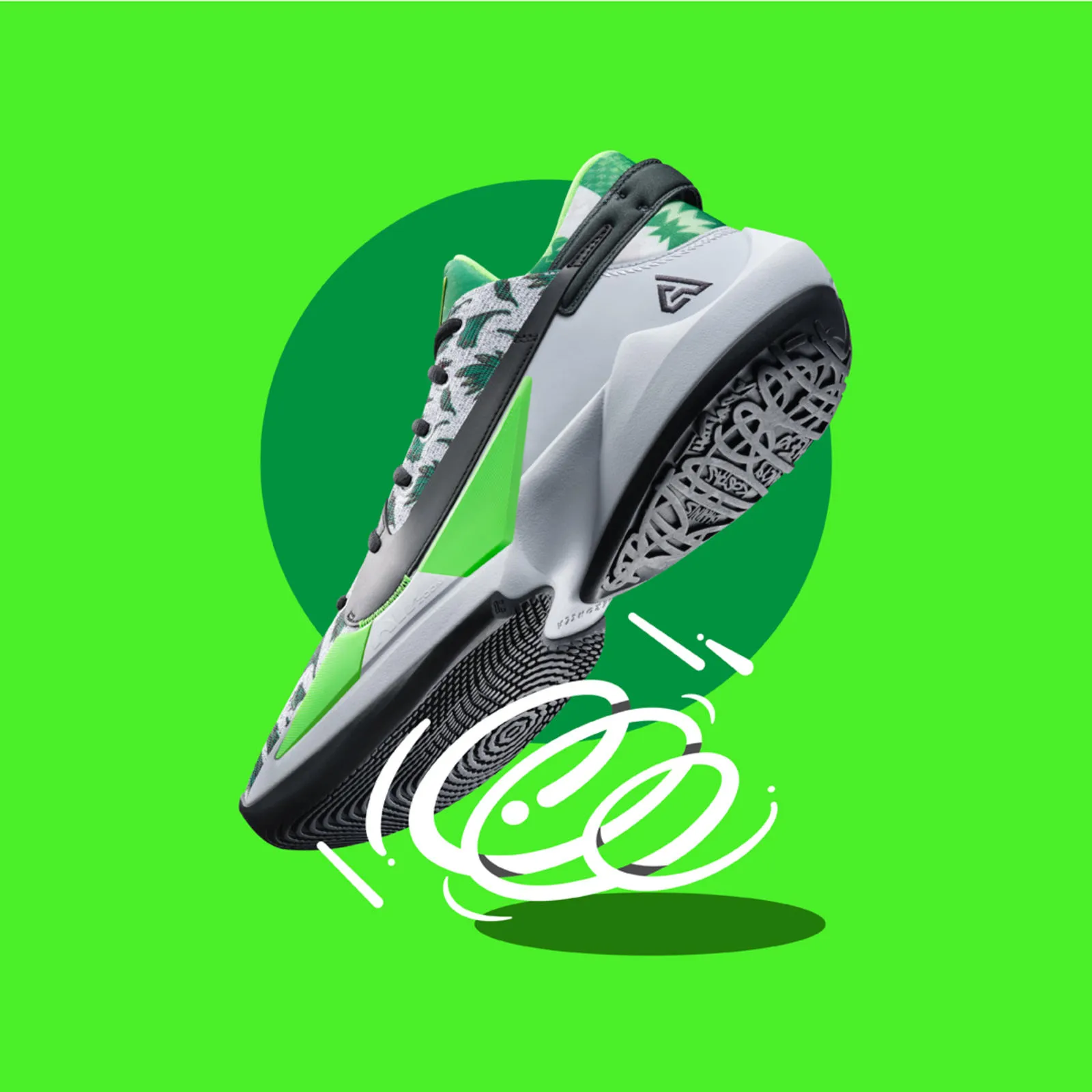 Pas peu fier de ce deuxième modèle signature, le Grec a insisté sur deux choses quant à l'élaboration de la chaussure. D'abord, « il fallait qu'elle raconte une histoire » : comme sur la ZF1, les prénoms de ses parents et de ses frères sont présents sur le modèle, ainsi que les différents logos qui lui sont associés, sans compter les coloris sur lesquels ils jouent pour rappeler son parcours entre le Nigéria, la Grèce et les États-Unis.