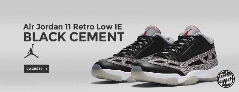 Procurez-vous maintenant sur Basket4Ballers.com la Air Jordan 11 Low IE dans un coloris “Black Cement” fabriquée avec des materiaux légers et respirants et agrémentée du mythique Elephant Print.