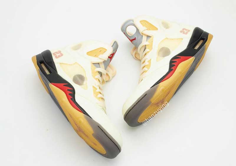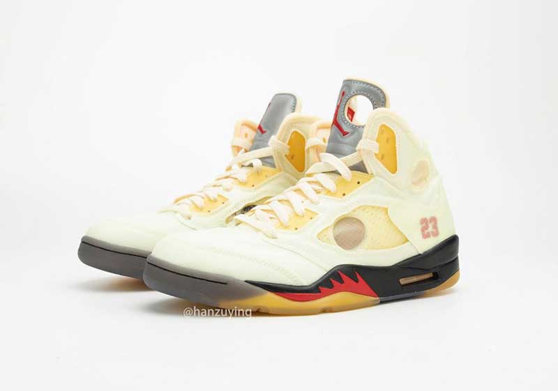 Dans la lignée de la Air Jordan 5 sortie en février dernier, le label de Virgil Abloh a décliné la même paire en blanc. Encore une fois, on joue sur les matières pour donner des effets de transparence.