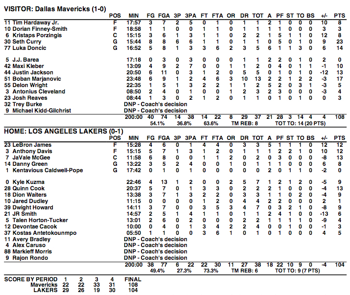 Les Mavericks étaient impatients de défier les Lakers pour se jauger, et malgré six absents, les coéquipiers de Luka Doncic s’imposent 108-104 face aux leaders de la conférence Ouest. L’homme du match, c’est Seth Curry, auteur de 23 points à 100% aux tirs avec un 6 sur 6 à 3-points !