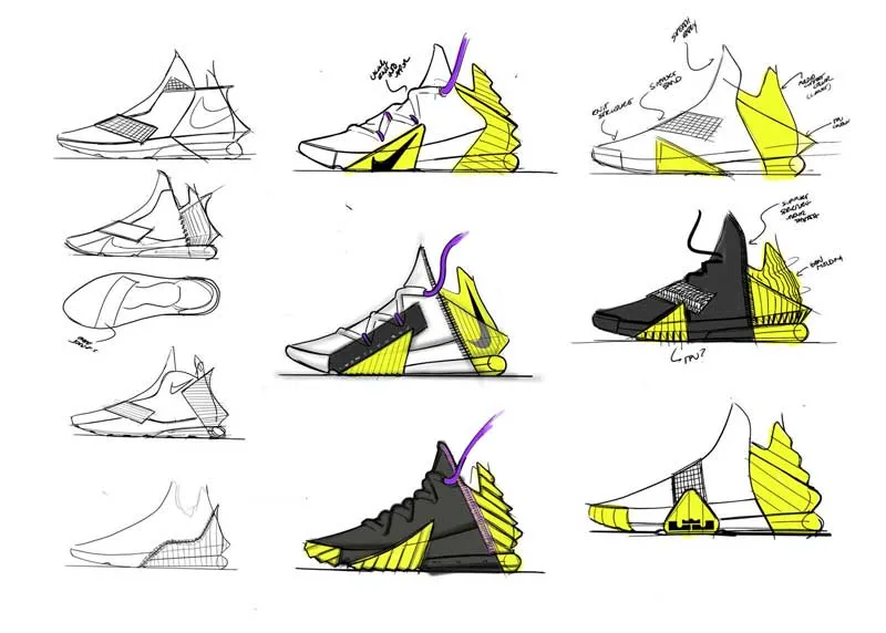 La chaussure est divisée en deux parties. L'arrière, en plastique et rigide, doit symboliser la puissance du King. À l'avant, la tige textile et l'amorti moins épais sont signe de vitesse.