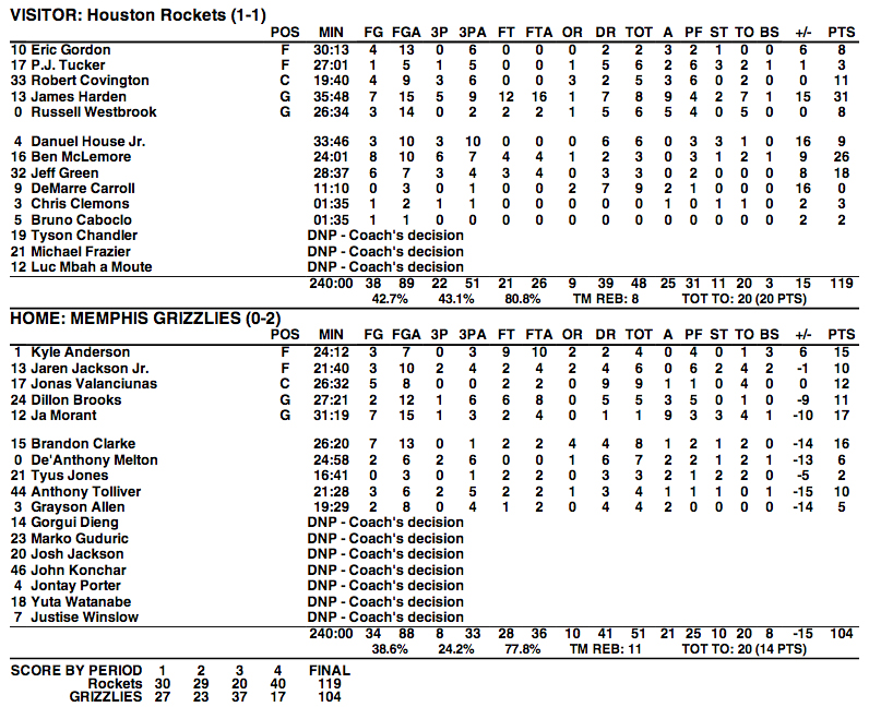 James Harden a ainsi disputé 36 des 48 minutes du match contre les Grizzlies (119-104) pour une ligne de stats presque classique : 31 points à 7/15 au tir dont 5/9 de loin, 9 passes, 8 rebonds et 7 pertes de balle. Pour “The Beard”, obligé de s’employer pour revenir dans le quatrième quart-temps, il faut reprendre du rythme.